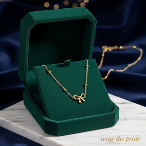 This gold-plated infinity bow pendant features an elegant design symbolizing endless connection and grace. Its anti-tarnish coating preserves the pendant’s brilliant finish and prevents discoloration, ensuring long-lasting wear. Ideal for adding a subtle yet sophisticated accent to any ensemble, this piece combines meaningful symbolism with enduring quality.