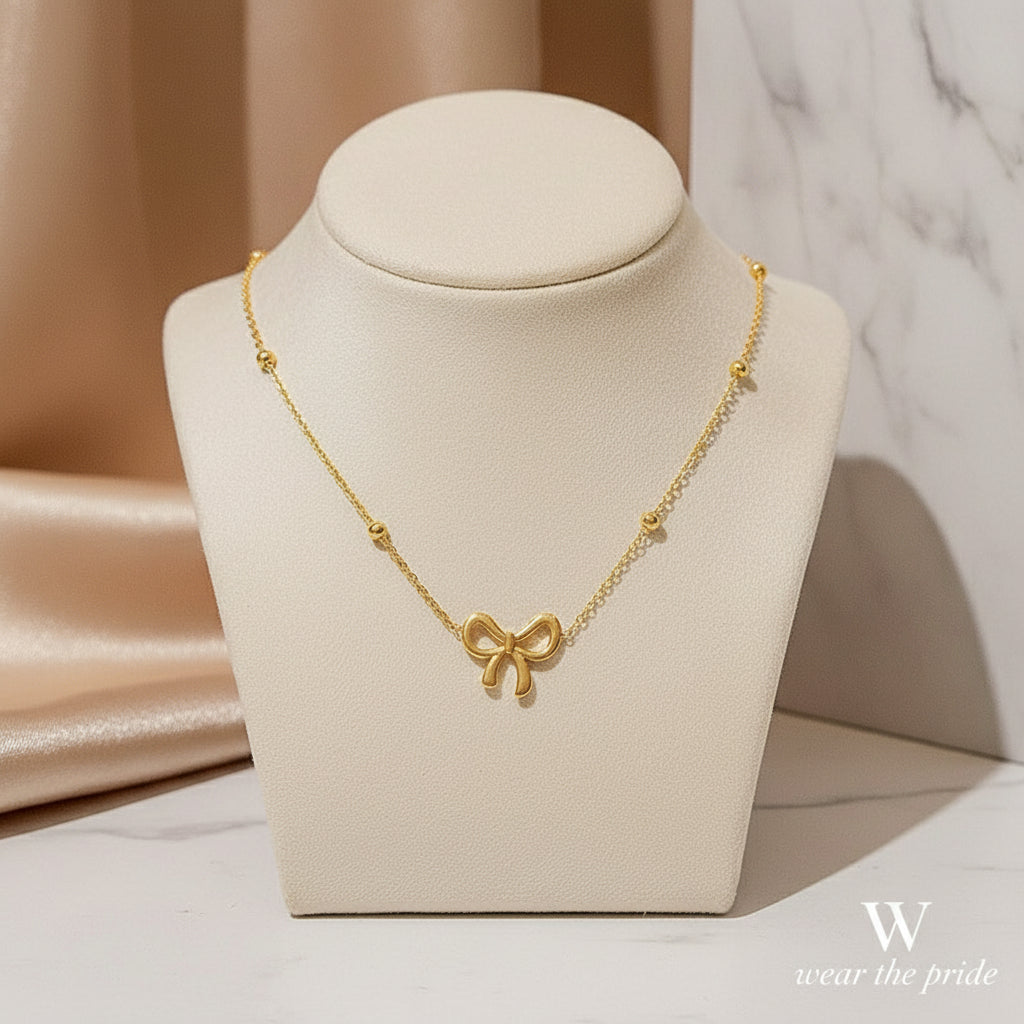 Gold-Plated Anti Tarnish Infinity Bow Pendant